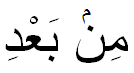 The lips should not be entirely pressed together, to allow for the meem to come through the nasal passage as well. The mouth should be prepared to say the baa after sounding through the meem. So the above, min b‘ad is sounds like mimm b‘ad when read. What ever you do, take this piece of advice and do not get mixed up between the full shaped meem (م) drawn above letters to indicate iqlaab, and the cut meem (مـ) to indicated a compulsory stop. Refer to the resources link below. Iqlaab must be sounded for two counts, i.e. the time it takes to say the words, “one – two”.
