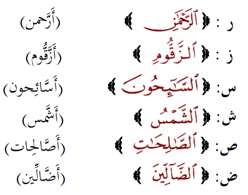 -Tajweed Rule “the sun letters” [Gateway To Arabic: page 62]