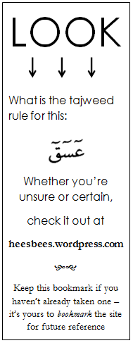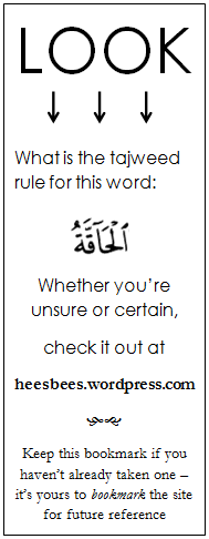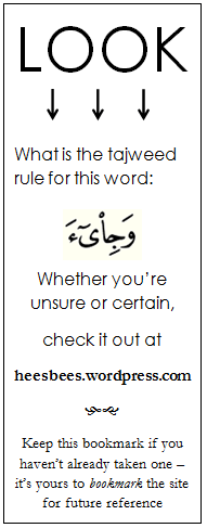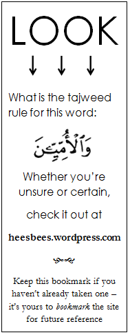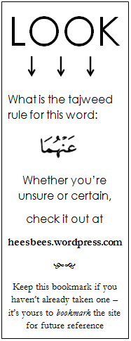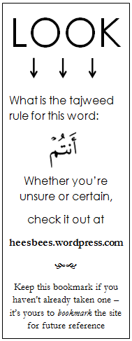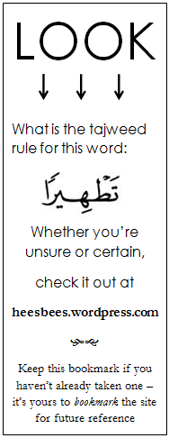 This flashcard/bookmark business is just the beginning insha Allah, of my efforts to promote tajweed…and challenge those who are already familiar with it!