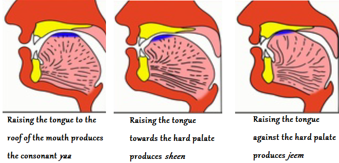 Finally, it is also important to note that by mid-tongue we’re referring strictly to the upper side, called thahrul-lisaan [6]. These three letters are called Al-Ahruf Al-Shajareeyah [7] because they emerge from what is called “Shajar Al-Lisaan“. This, simply put, means these letters originate from the ‘core of the tongue’.