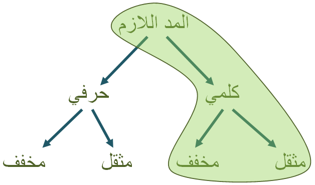 Al-Madd Al-Laazim Al-Harfee: letter based necessary prolongation is the second branch of al-madd al-laazim. This posts discusses the difference between al-madd al-laazim harfee mukhfaffaf and harfee muthaqal as outlined in the diagram.
